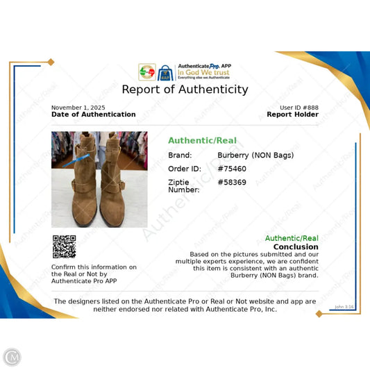 Boots Luxury Designer By Burberry In Brown, Size: 8.5