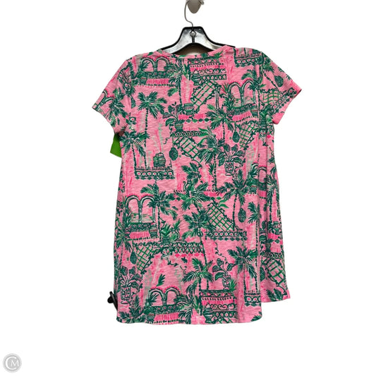 Top Short Sleeve Designer By Lilly Pulitzer In Green & Pink, Size: S