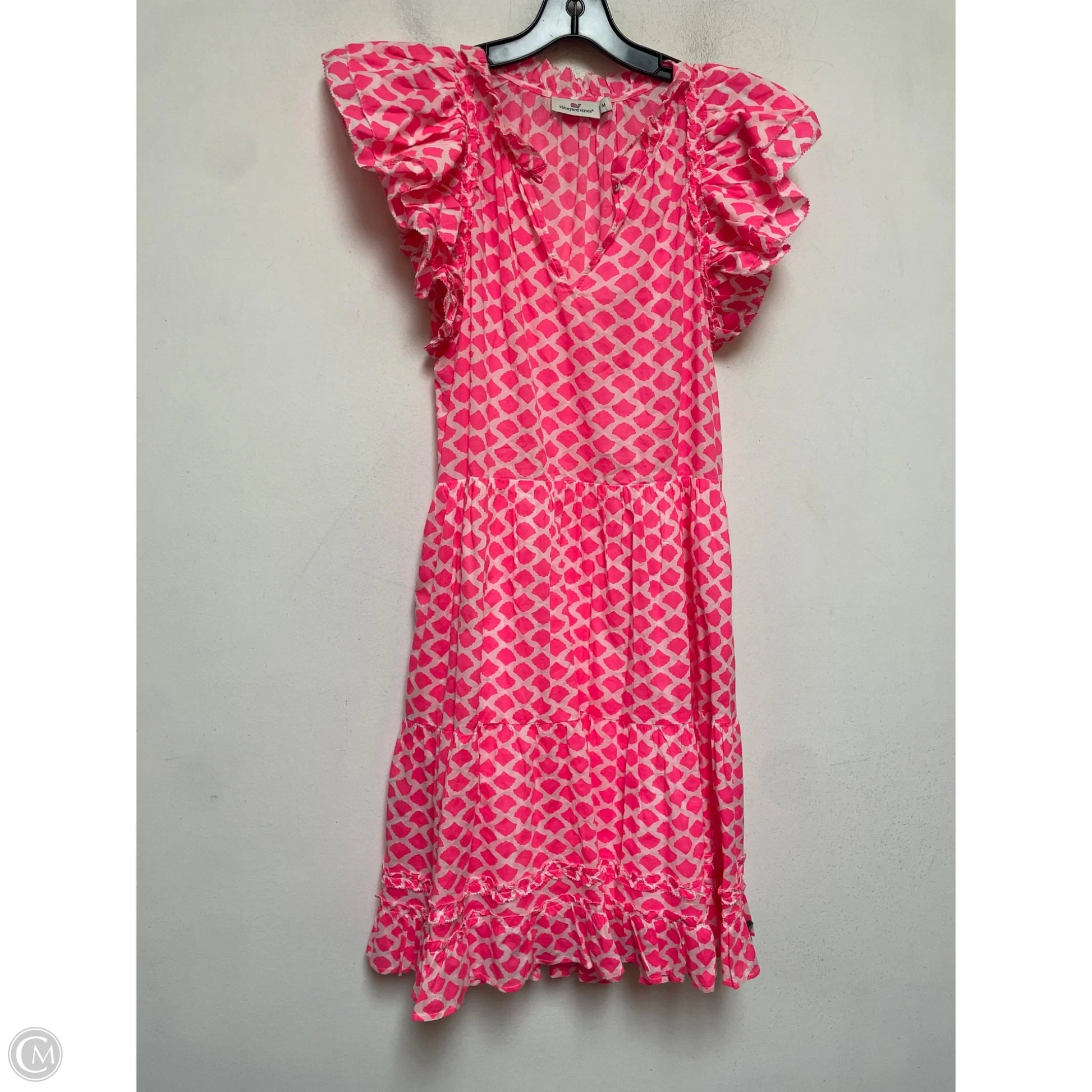 Dress Casual Short By Vineyard Vines In Pink & White, Size: M
