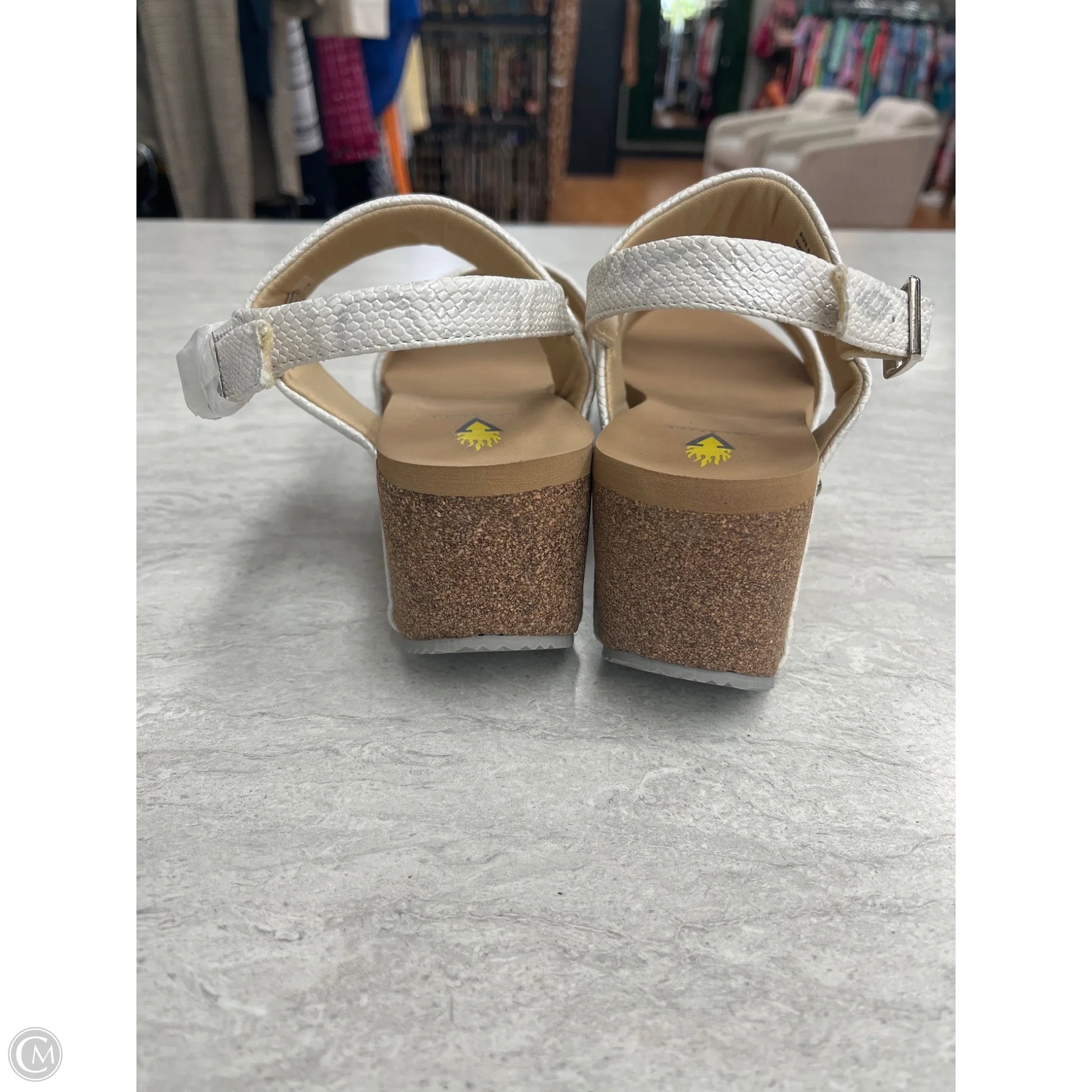 Sandals Heels Wedge By Volatile In Silver & White, Size: 8