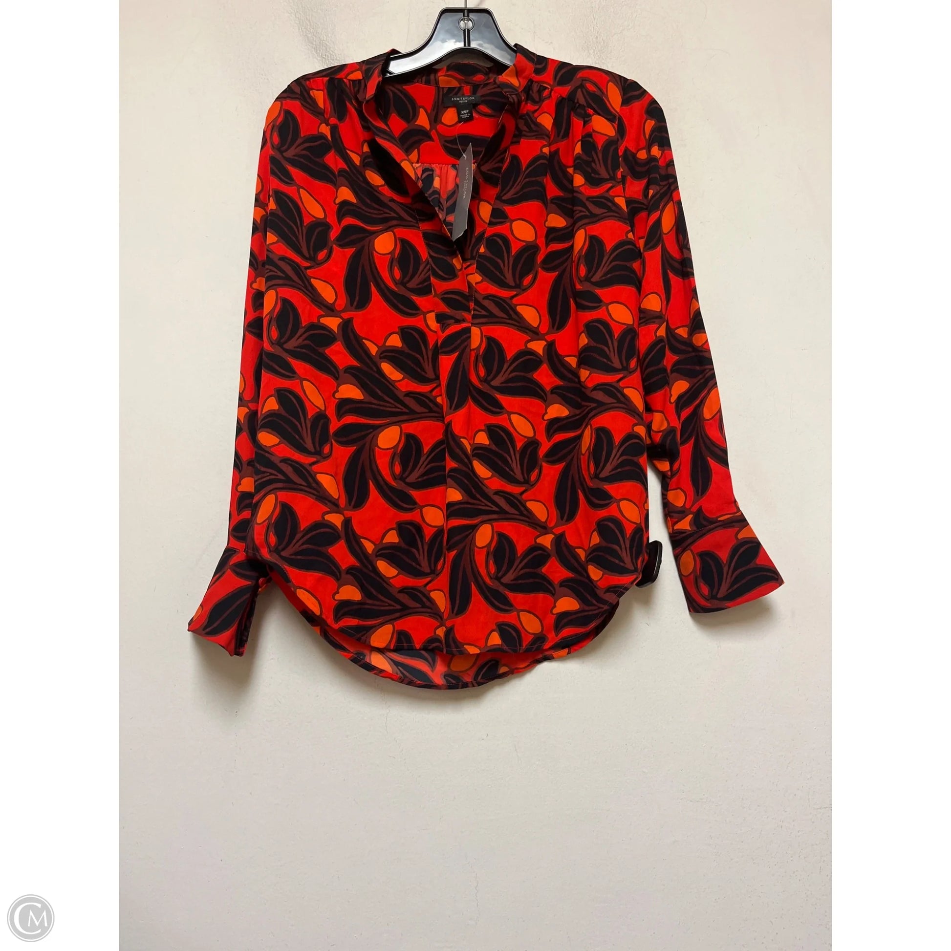 Top Long Sleeve By Ann Taylor In Black & Orange, Size: Xs