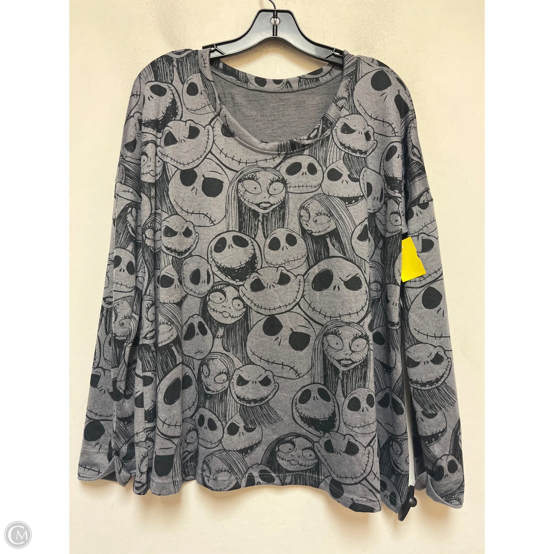 Top Long Sleeve By Disney In Black & Grey, Size: Xl