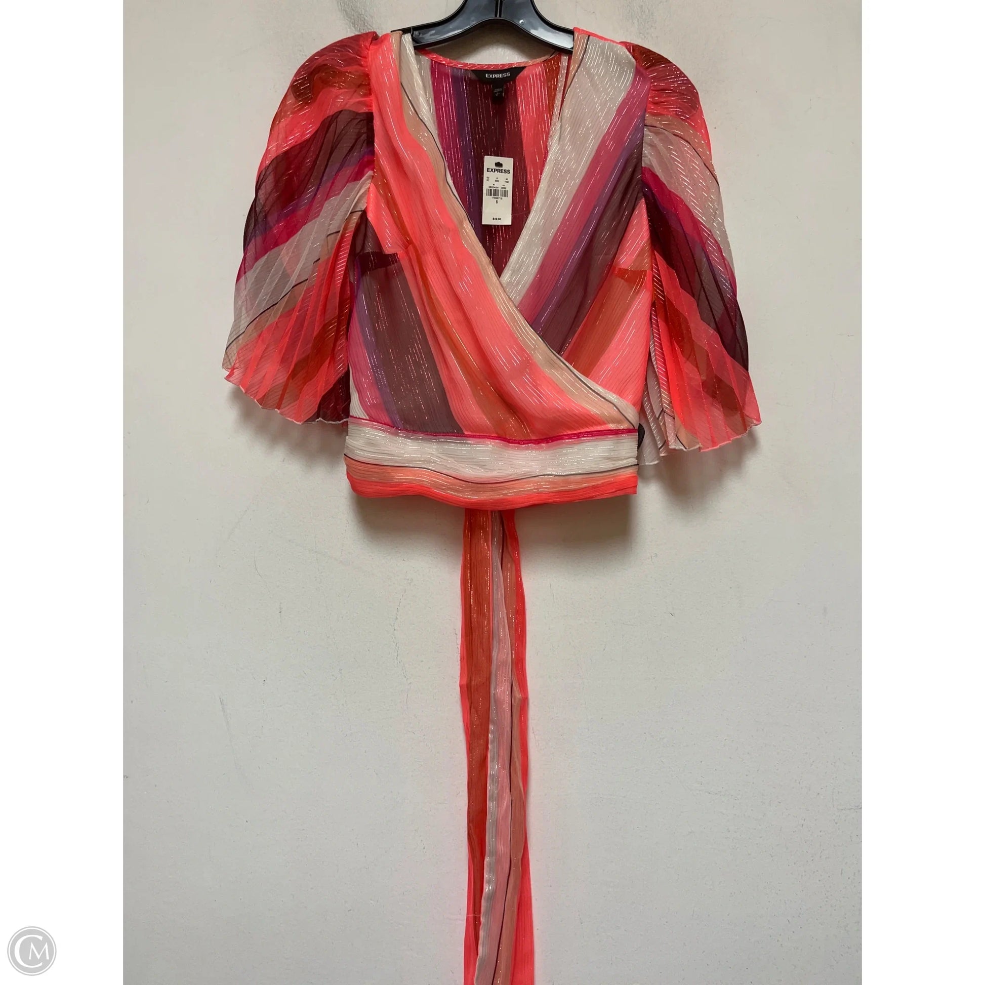 Top Short Sleeve By Express In Striped Pattern, Size: S